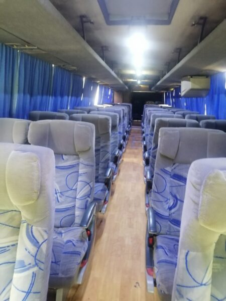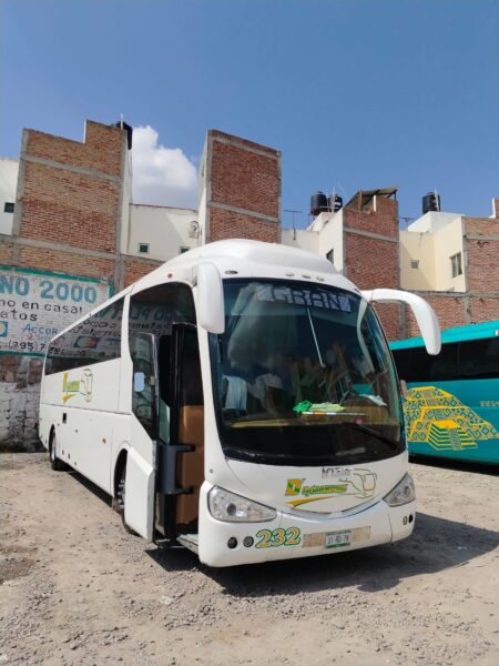 Con estos camiones si falta alguien es por aburrido, no quiso ir. 46 pasajeros